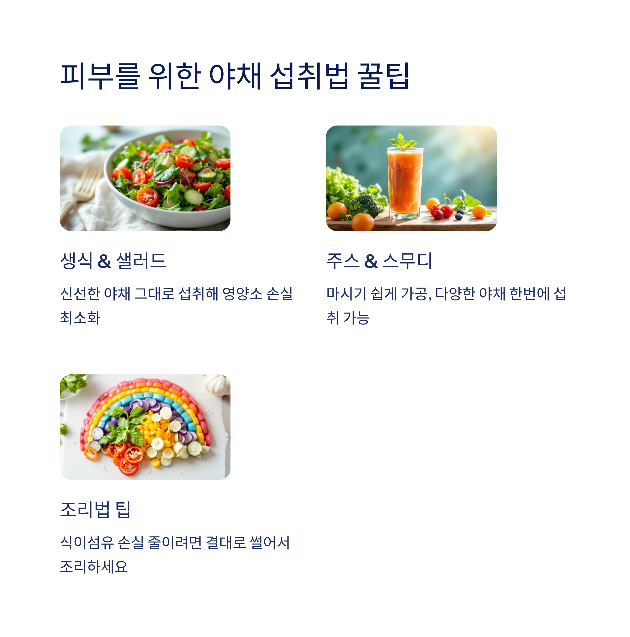 피부 고민, 이제 화장품보다 식단에서 답을 찾아보세요. 건강한 야채 한 접시가 당신의 피부를 바꿔줄지도 몰라요.
